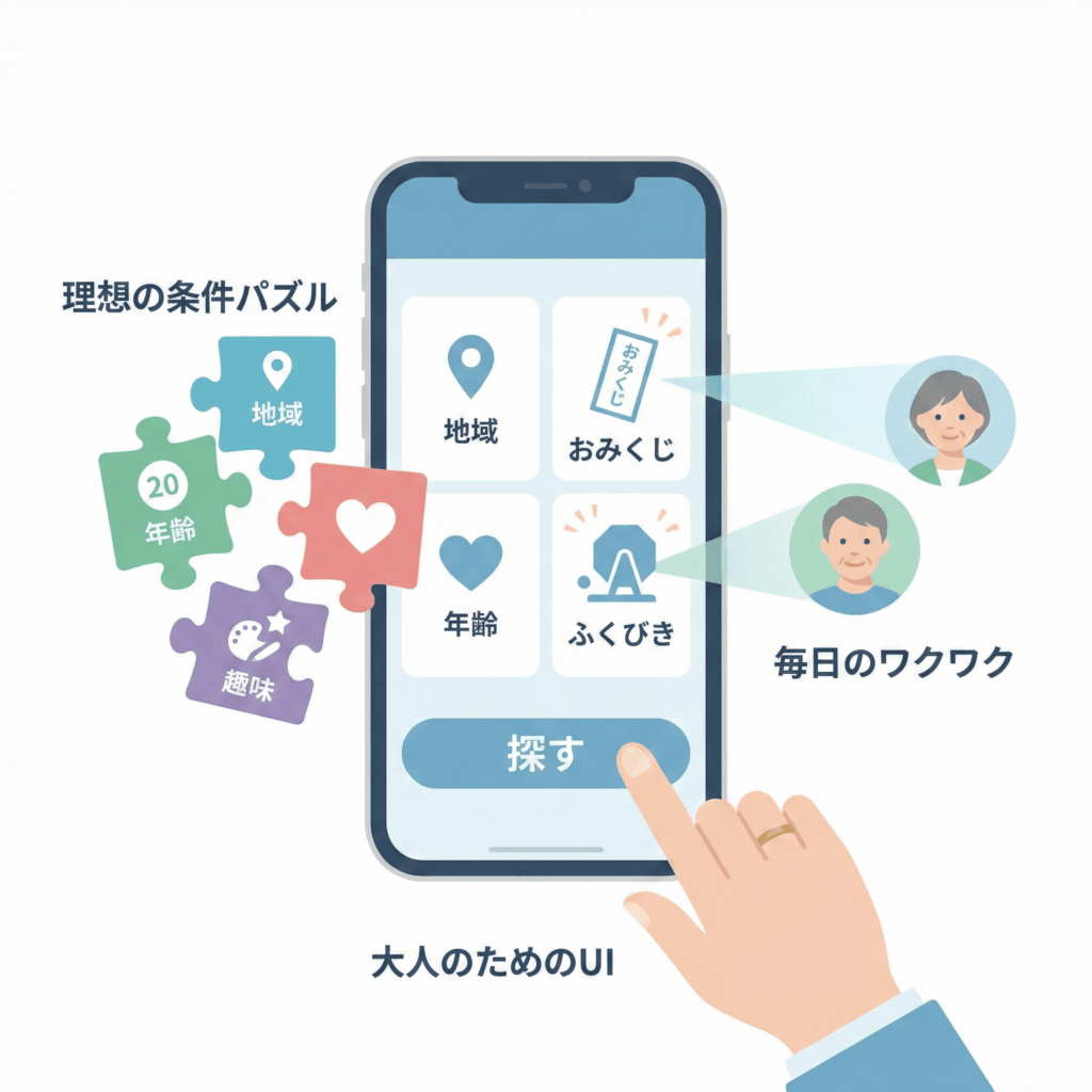 操作自体も非常にシンプルで、スマホ操作に慣れていない方でも迷わず使いこなせるようUIが設計されています。楽しみながら相手を探せる工夫が、継続的な利用を支えています。