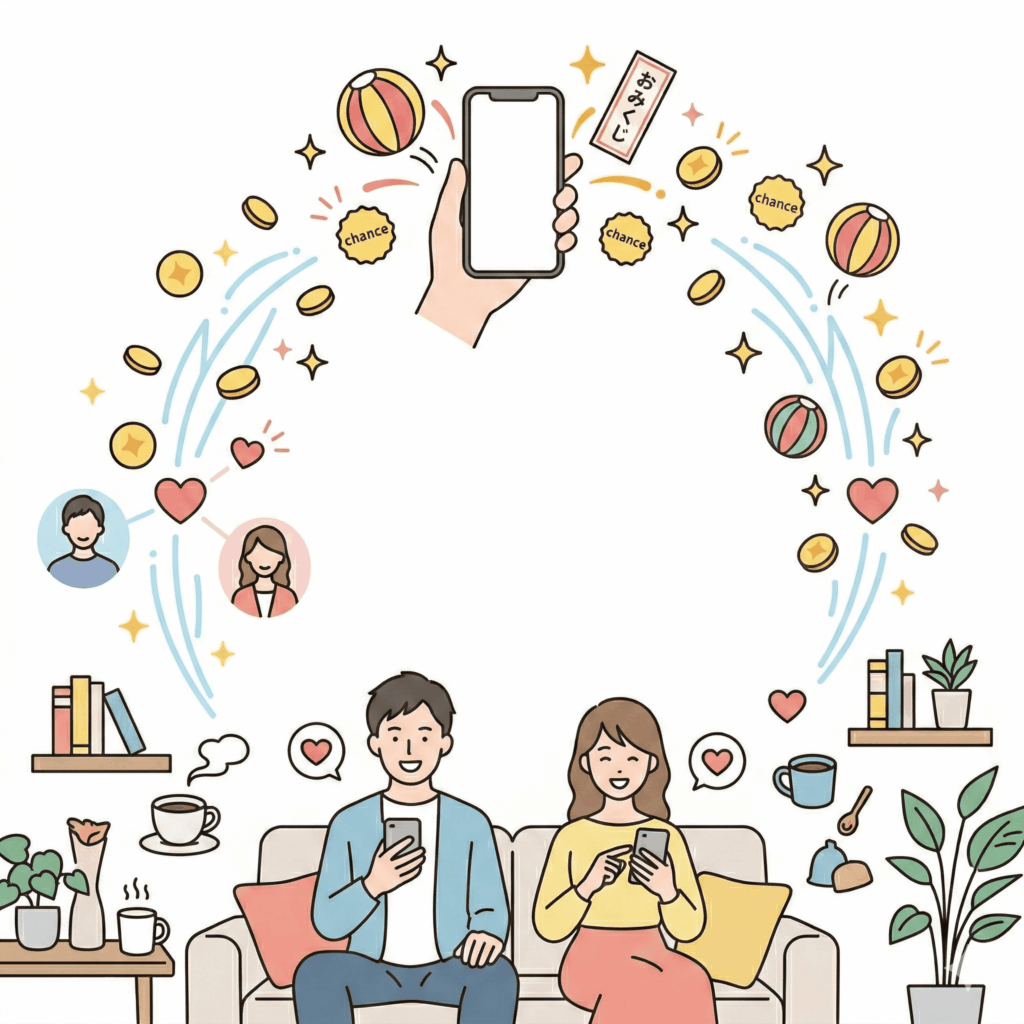 例えば、おみくじの結果を話題にしたり、イベントを通じて得たポイントをきっかけにメッセージを送ったりと、システム側が出会いのきっかけを優しく演出してくれます。かしこまった挨拶から始める必要がなく、日常の延長線上で自然に会話が弾む工夫が随所に散りばめられています。こうした 「楽しみながら、いつの間にか仲良くなれる」 仕組みがあることで、マッチングアプリ初心者の方でも、気負わずに交流の輪を広げることが可能です。